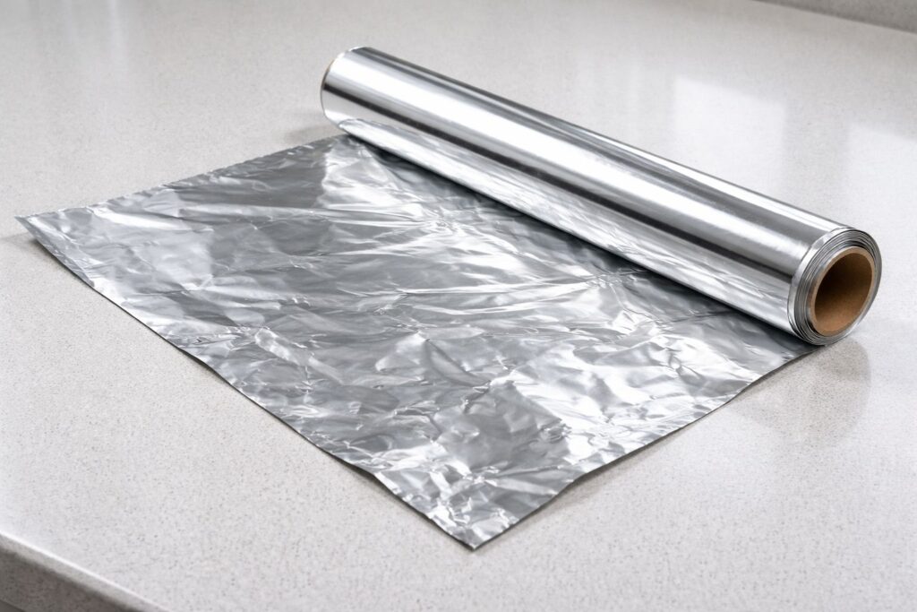 Aluminum foil has saved dinner more times than I can count. I’ve used it to wrap garlic bread, make quick roasting trays, and line pans when things get messy.