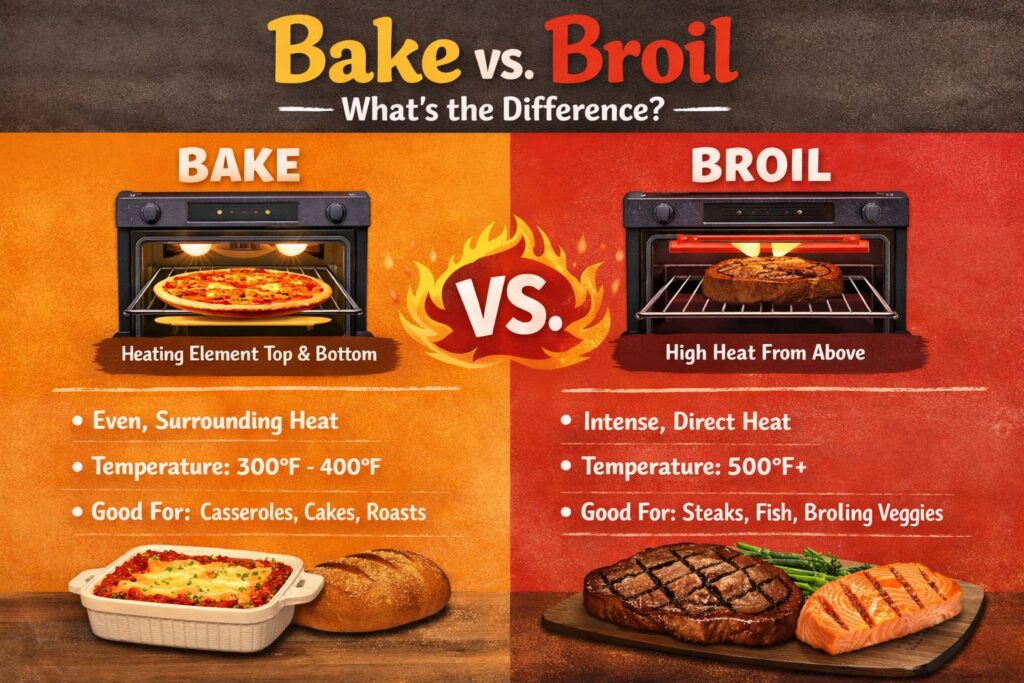 🔥 Bake vs. Broil — What’s the Difference?