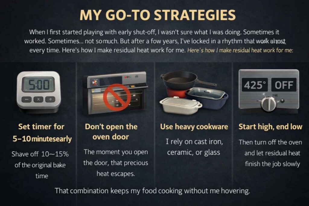 What surprised me was how much useful cooking happens during that “cool-down” phase. The oven’s still doing work — just without sucking more power or blasting the kitchen.